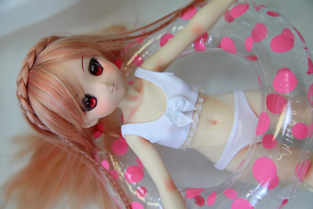 100円ショップで売っているエアーフリスビーの上の平らな部分を切り取ると1/3ドールに丁度いい感じの浮き輪になる・・・というのは有名らしい。