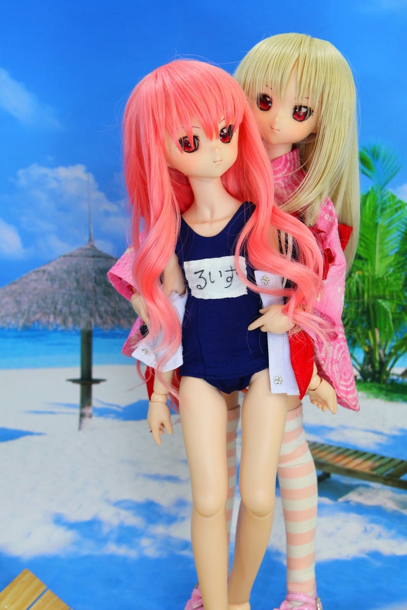 夏っぽく海と水着で